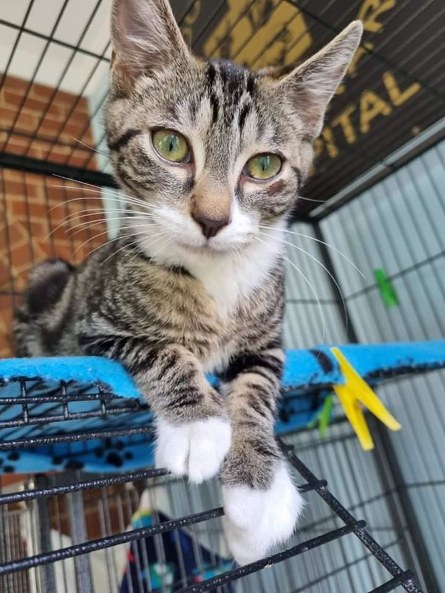 Tip came to us with his brother when they were just 6 weeks old. They were found living in an old mattress & were very malnourished. After a bath, a good feed & a lot of TLC the boys had shown improvement in he first 24hrs of being in our care. Tip is now almost 4 months old & still looking for a family of his own. Tip has a bright & bubbly personality & just wants to play all day. He doesn't really like being on his own so a home with another cat or dog, or someone who doesn't work long hours would be perfect for Tip.