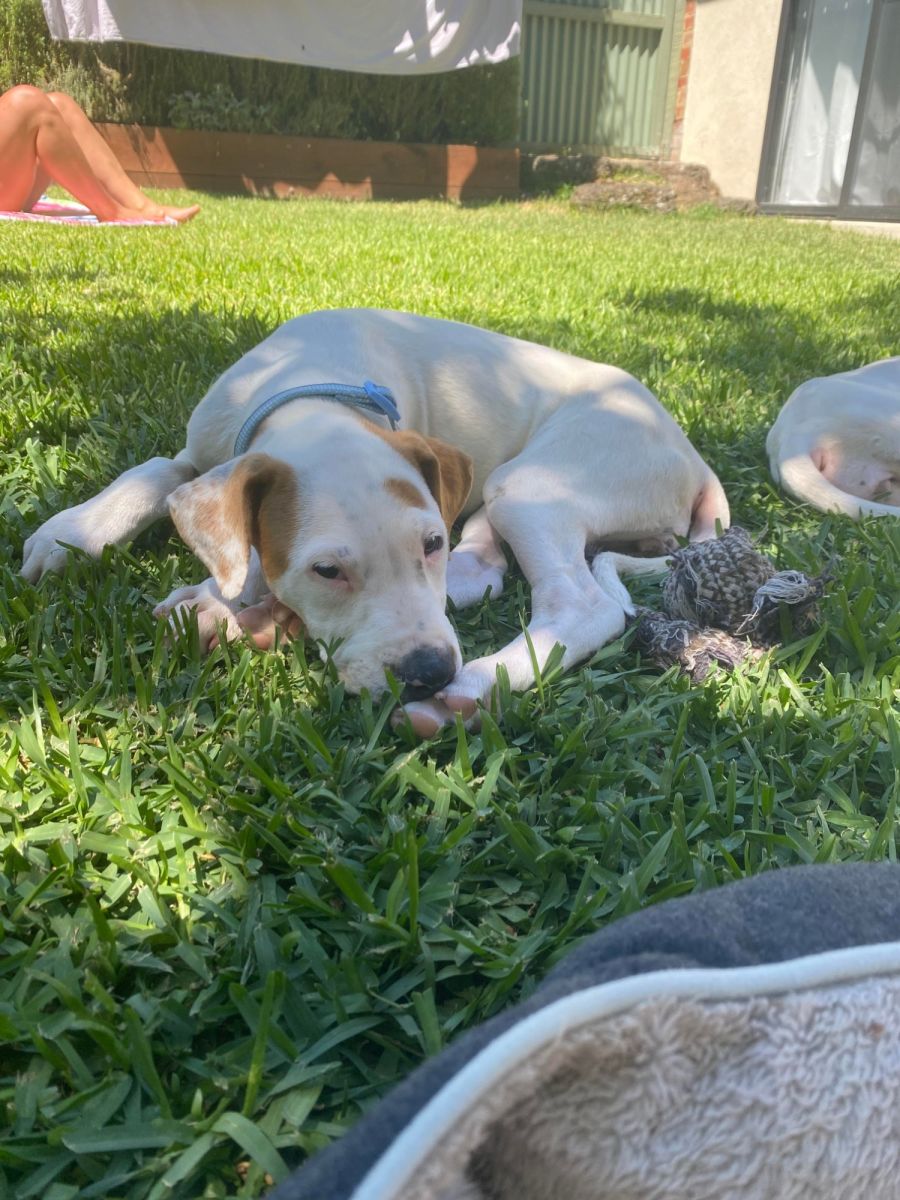 Shakira is the most loving pup. She is a big friendly giant who is a perfect dog with the great mix of laziness and energetic depending on her mood. She would be a great dog for any situation for a family or couple or single. She would be suited to a situation where she is walked at least once a day when older and given plenty of stimulation. She is a fantastic dog and will bring joy to any home. Commitment to lifelong training and socialisation will be paramount to help develop her into a well mannered adult.