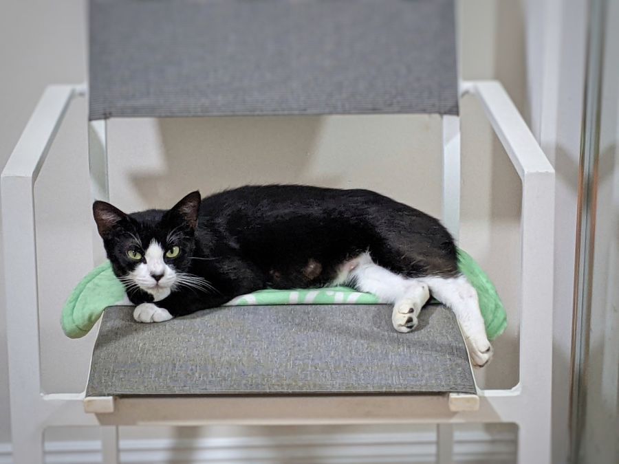 Boots (aka Bootsie, BootBoot) is a gorgeous tuxedo kitty with a playful and animated personality. While shy at first, she warms up to her humans and fur-siblings and is bound to make you laugh with her mannerisms.