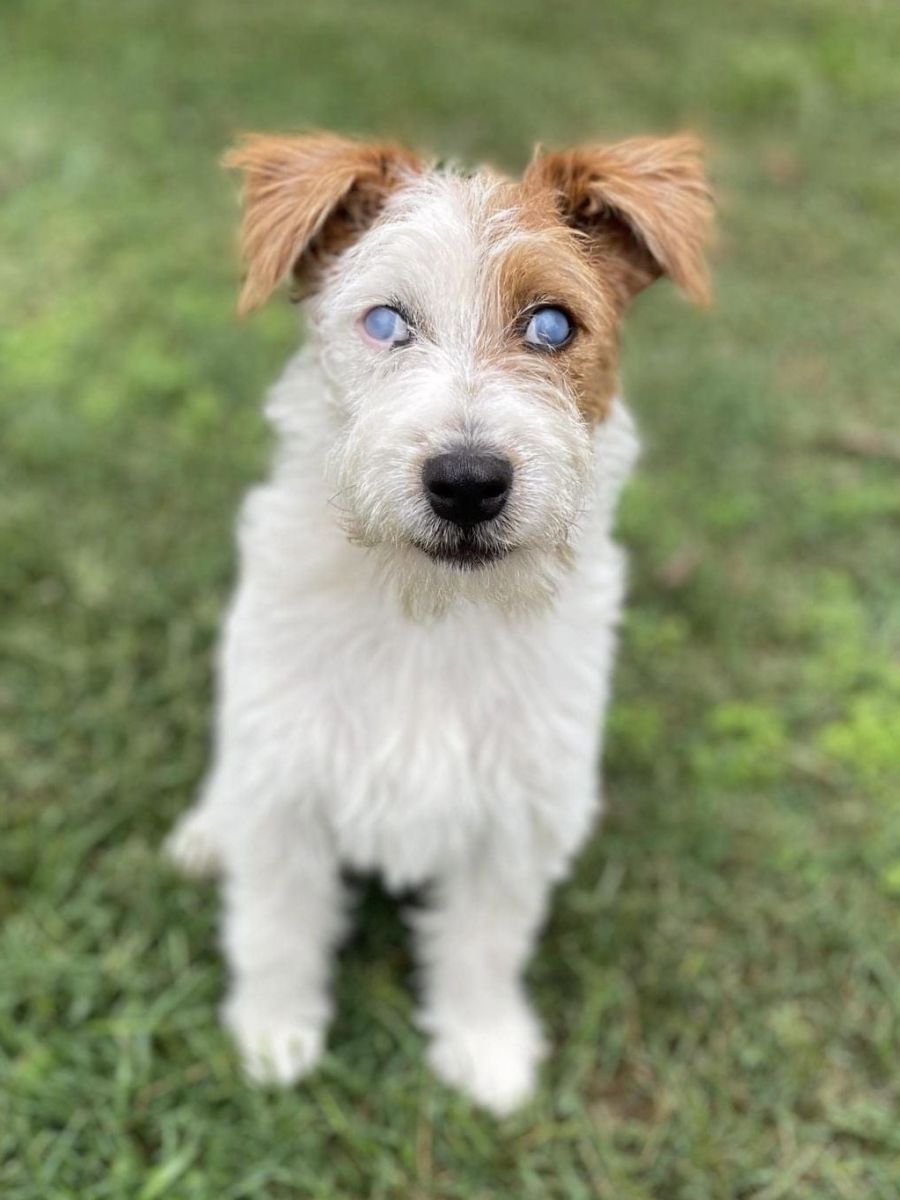 Our special boy......This beautiful 5 month old Wire haired Jack russell is beyond a show stopper! He is without most of his sight but can see big objects and furniture. He is in care with a 5 year old wolf hound cross, 4 year old Great Dane, 1 year old Jack Russell and a naughty, somewhat crazy 6 month old kelpie!