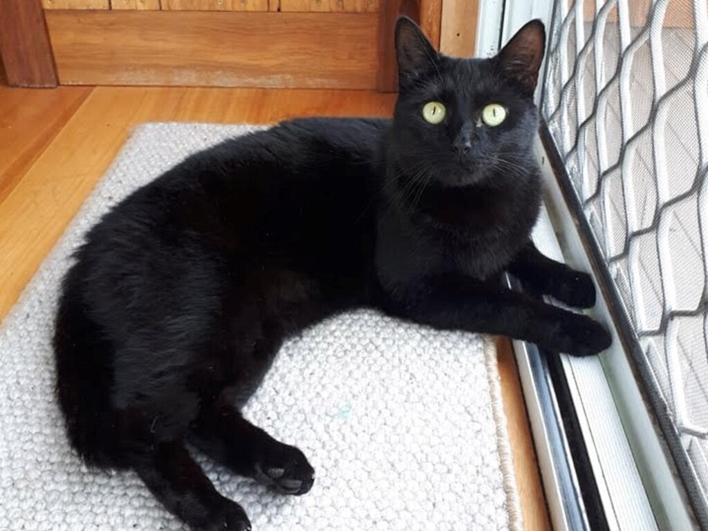 Two year old POSSUM #434C is a sleek and shiny pure black cat with big green eyes. She is very affectionate, and happy to lay around in a cool spot all day. She has a cute little meow, and a rumbling purr when happy. She accidently escaped on day three of staying with her foster family, but was there at the back door on dusk wanting to be let in. She will adapt to her new home quickly and gets on well with other cats and dogs. She loves scratches and pats and rolls over in appreciation. She goes soft when picked up and hasn't clawed at all. A low maintenance ready to go cat, litterbox trained and looking for a routine with her new family. Possum is desexed, chipped, vaccinated, worm/flea treated and vet checked.