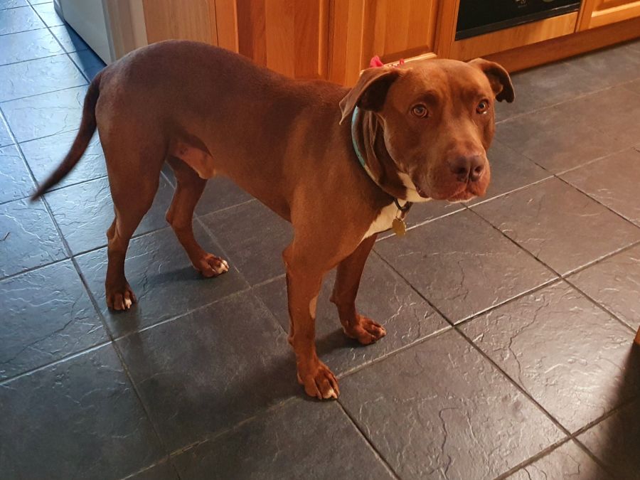 He has been sharing his foster home with 2 staffy mixes. They play well together and he loves his wrestling matches to get out his energy.