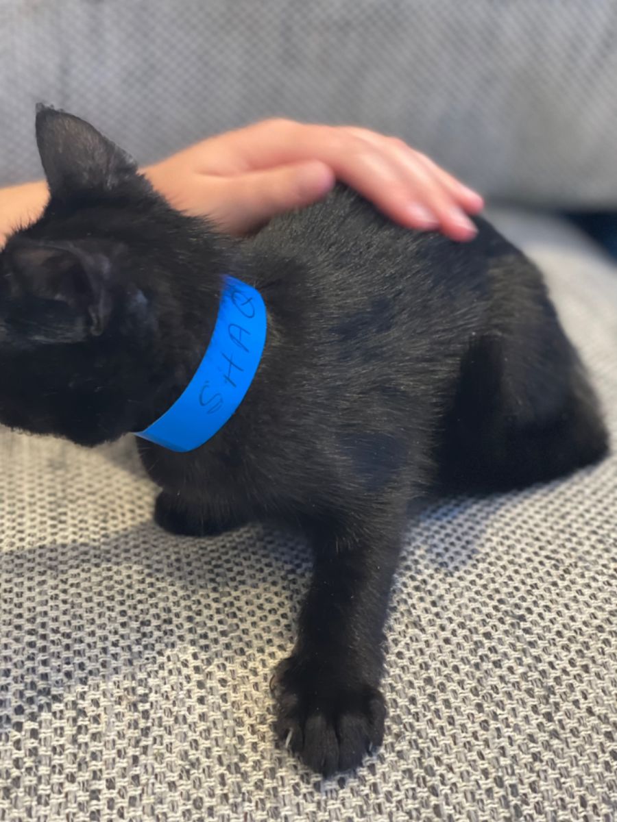 Meet Shaq! Who came into foster care as part of meow rescue last litter program. Shaq is a funny boy who like his siblings loves to play with all cats toys and if he can’t find one he will make fun and games for himself out of anything he can find especially pen lids 😉