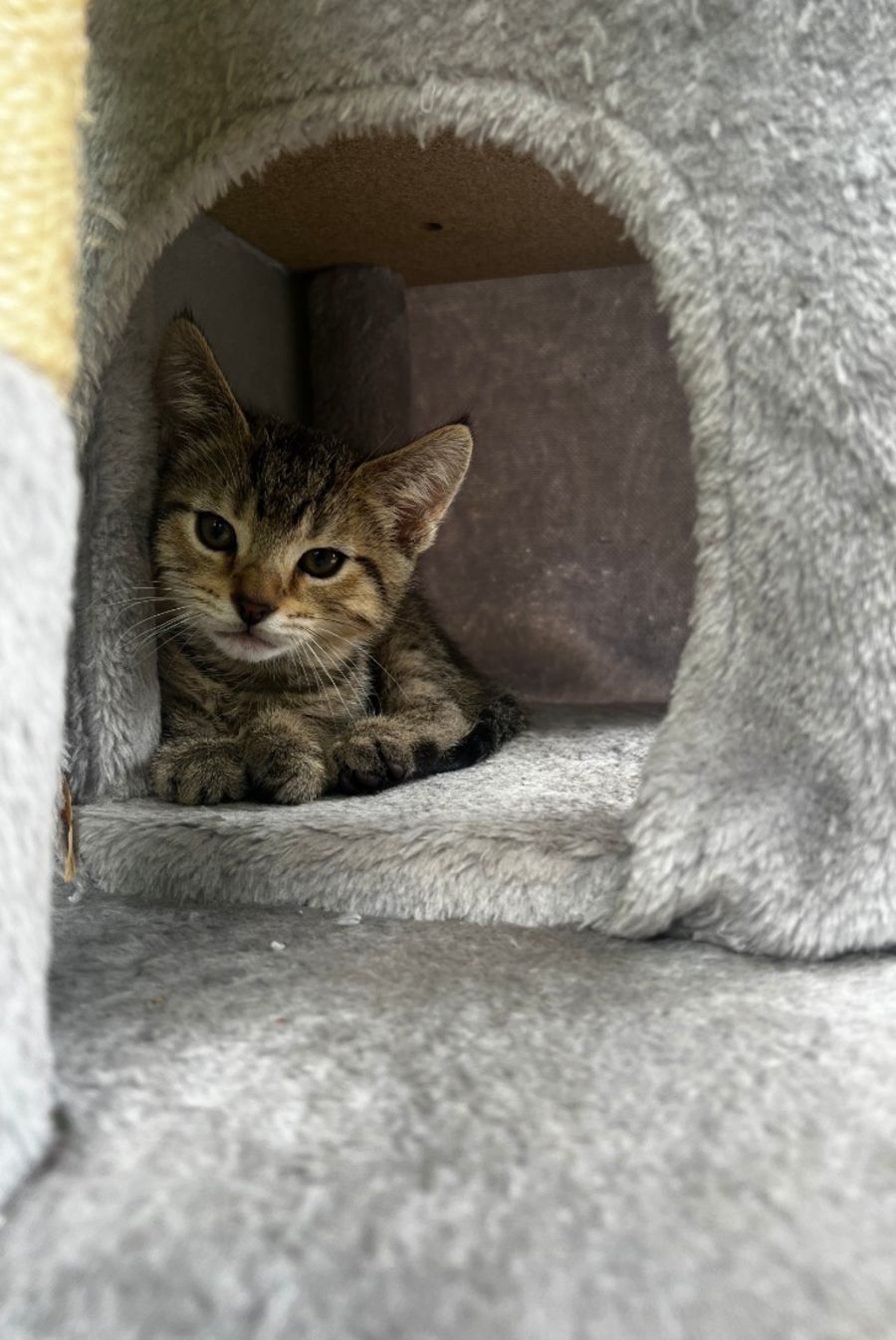 I am the only boy of the litter & I’m very handsome! My fosters named me fern as I have a pretty unusual coat for a tabby cat, it’s much lighter than most & I have unusual brown eyes! I may be the only boy of the litter but I certainly enjoy keeping my sisters on their toes! Nothing is better than a good game of rough & tumble with my favourite siblings Salem and Sabrina! I used to let the girls steal the lime light when it came to socialising with my human fosters I was super shy as a baby kitten, but oh boy in the last two weeks haven’t I came out of my shell! I am now a confident kitten who is very fond of stokes & belly rubs! I I’m ready to find my forever home. So if your looking for a handsome boy, packed with personality who will keep you entertained for hours, I’m your man!
