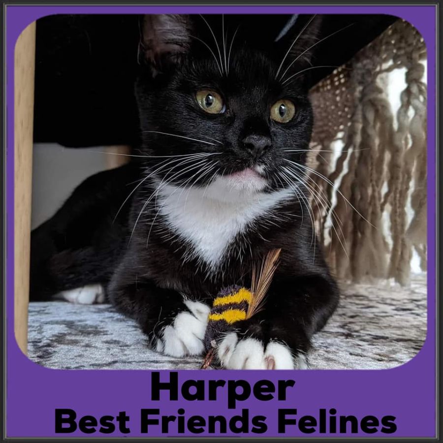 Harper is a funny little girl, she is sweet as pie & very quirky, affectjonaly know as puppy cat, she takes on the position of always knowing who is at her house, and stalks them through the windows as they leave. When her foster family approaches to give her some love, she will do one of two things:
