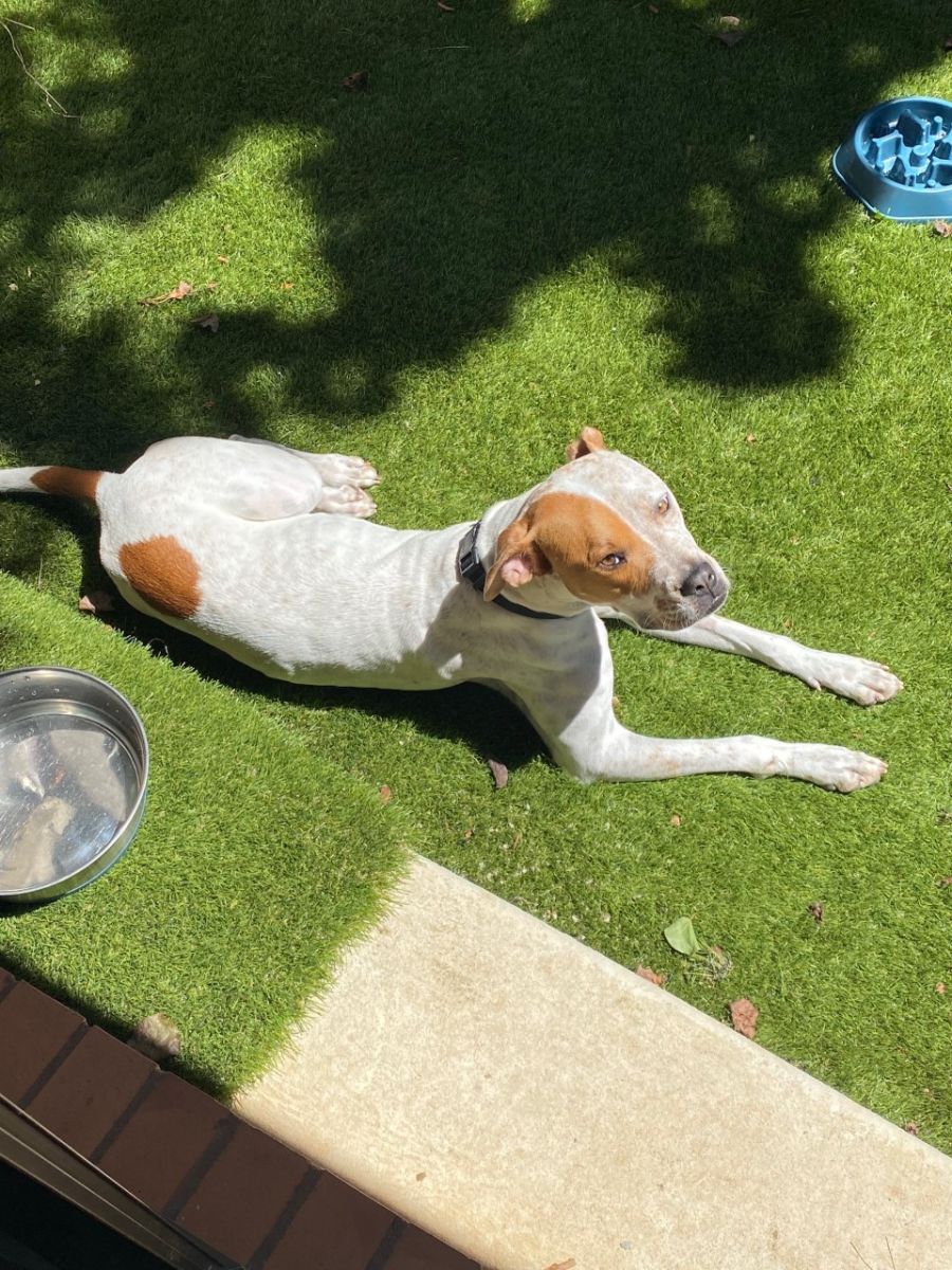 Dodie’s favourite things are: playing fetch in the back yard (preferably a large yard with plenty of space to run!), food & treats and playing tug-of-war to burn some energy before having some couch time with her human. She can be easily occupied with a chew / squeak toy or an IQ treat ball / puzzle, and her new home must have many toys for her to play with! She can get a little bit shaky at the beginning of a car ride, but soon settles in and tolerates them well – though be mindful that she is always very eager to jump in and out of the car even when she's not supposed to!
