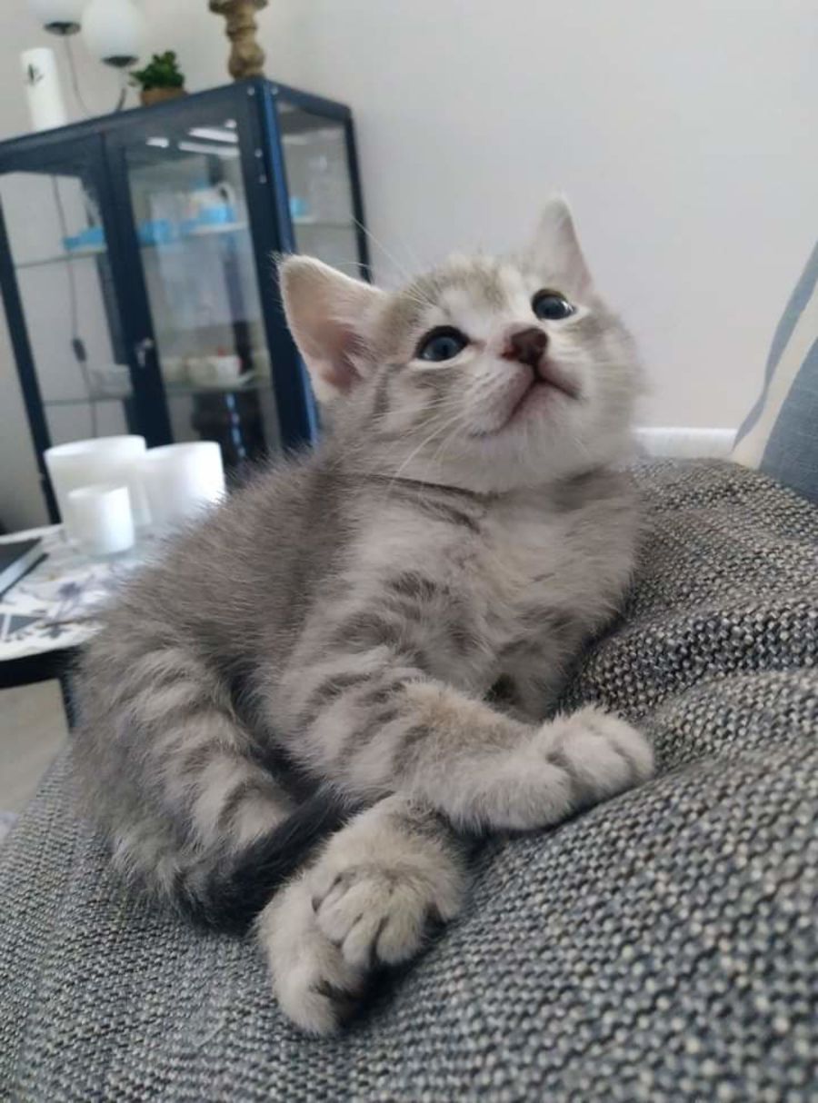 Hi, I am Miracle, and I am a beautiful lilac tabby Tonkinese cross born 5 December 2021. My final eye colour is yet to show but our foster mum says my eyes will either be green or amber.