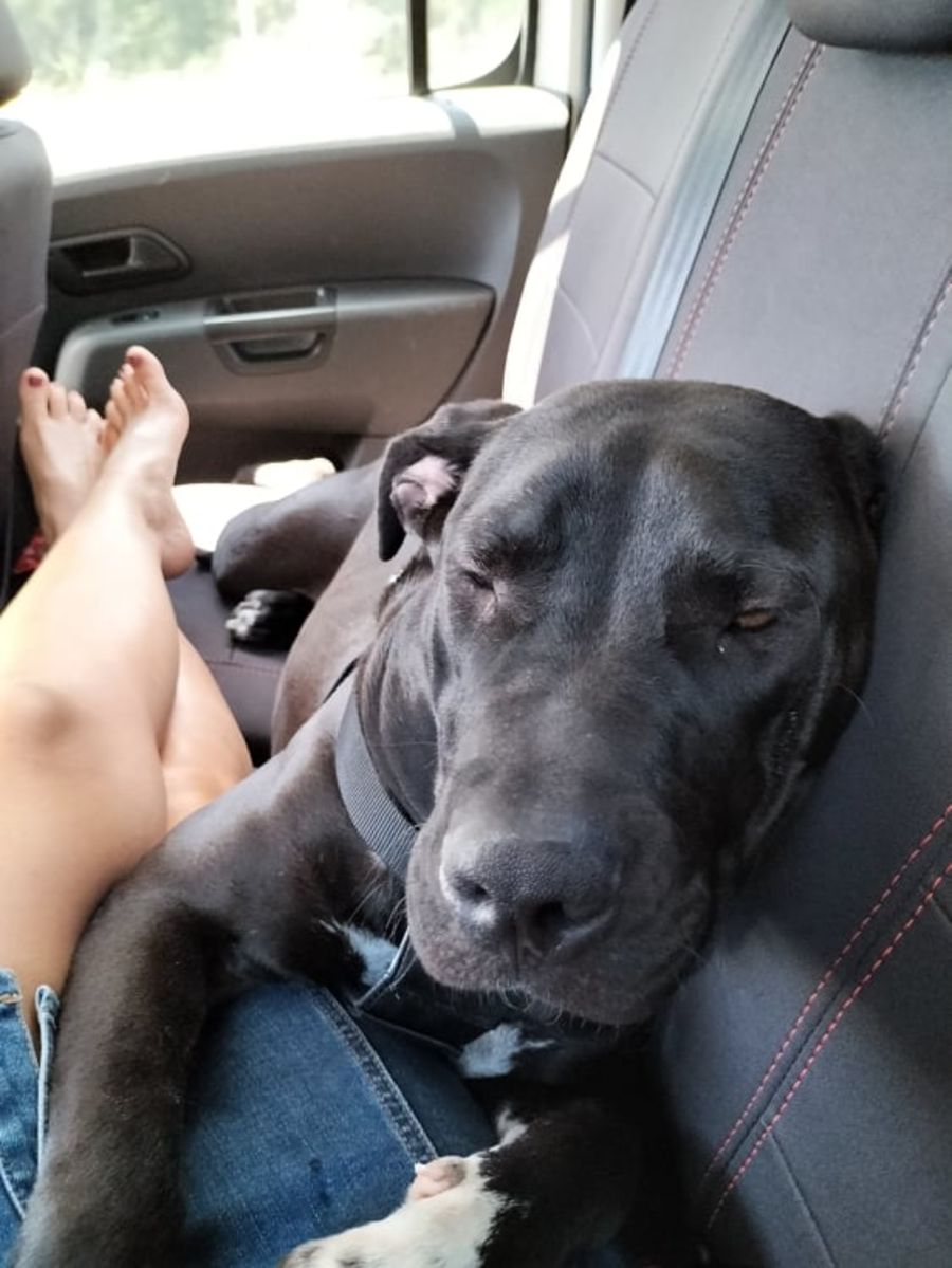 She is a loyal companion and would be by your side or at your feet all day if she could. She loves kids and other dogs of all sizes, tho she's still learning her manners with other dogs, who will occasionally tell her to calm down.