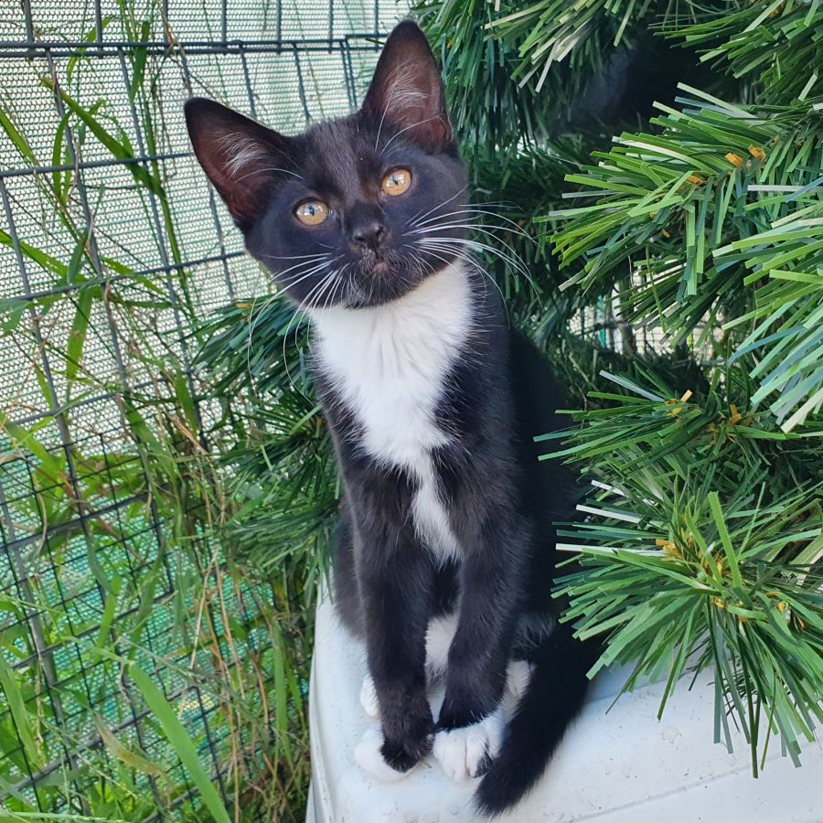 She has gorgeous black and white markings, including a big white bib and mittens.