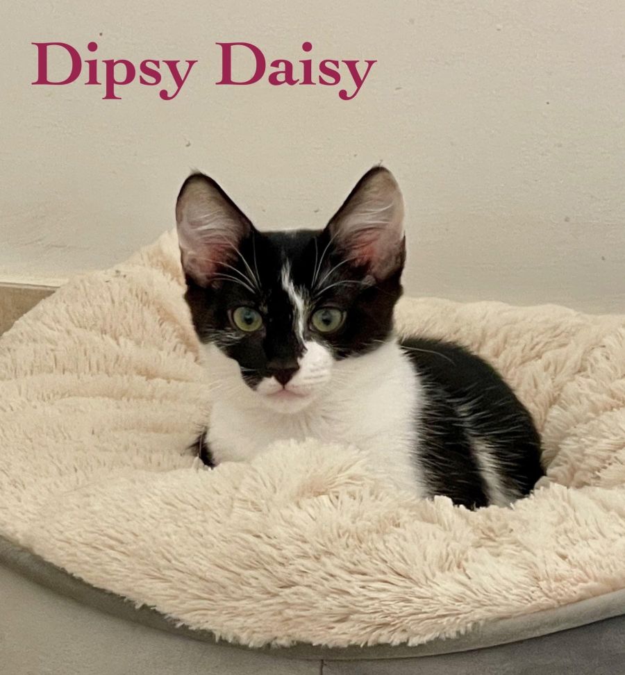 Dispy is a sweetheart and loves pats but would benefit better going to a quiet indoor home as she can startle easy . Her sister Dotty is a confident smoochy lap cat and makes dipsy feel safe Dotty tries things first then dipsy will follow as she trusts her sister. Dotty doesnt like being away from dipsy and she will meow cry untill she is with her again hence the need for these sisters to be adopted together. they are both gorgeous girls with alot of love and smooches to give.🥰.