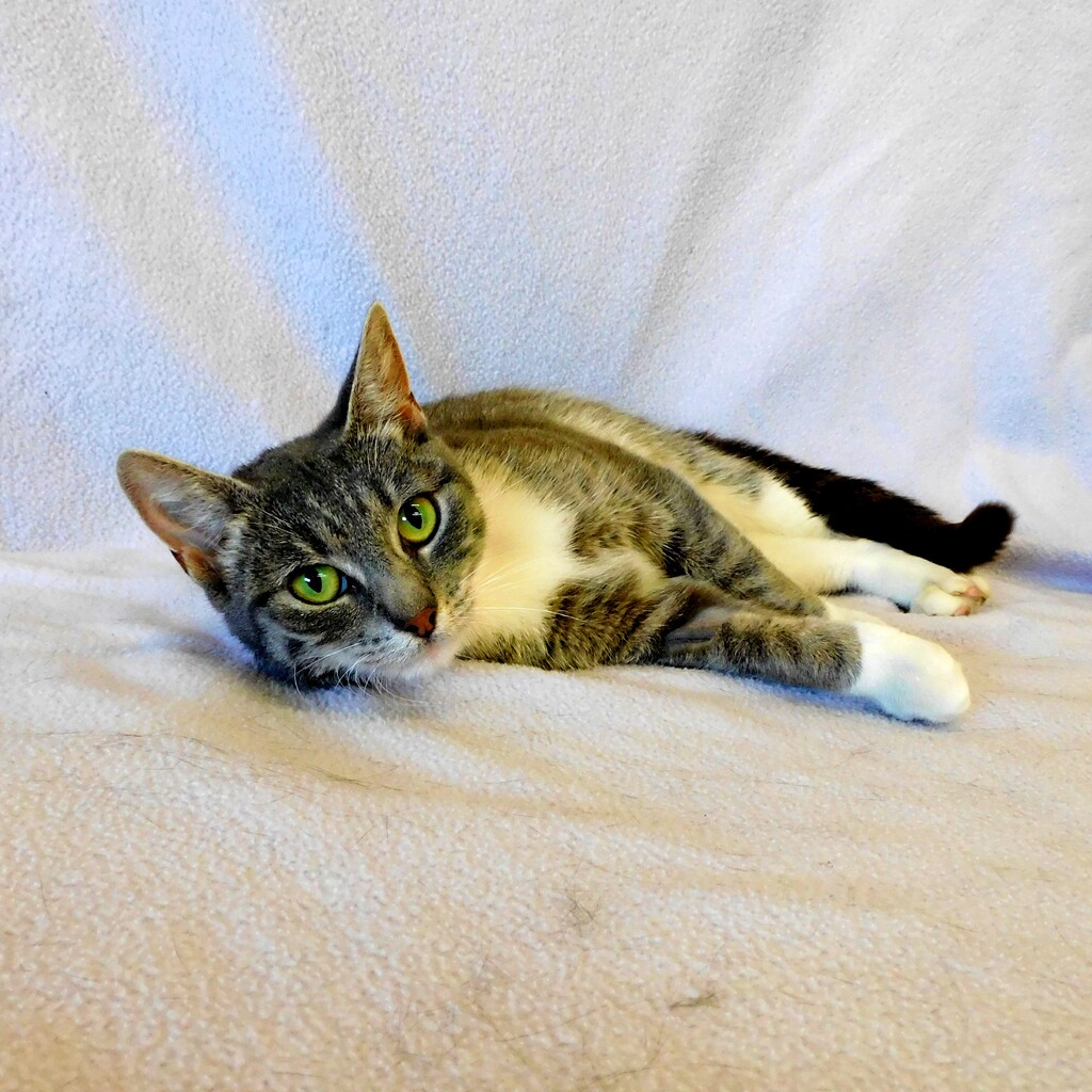 If you're looking for an outgoing, friendly and affectionate adult cat then think Zelda. She enjoys all the small pleasures in life, as well as, sitting back, relaxing and enjoying a good smooch with her human companions. With Zelda's novel looks you can rest assured you will not find another cat quite like her.
