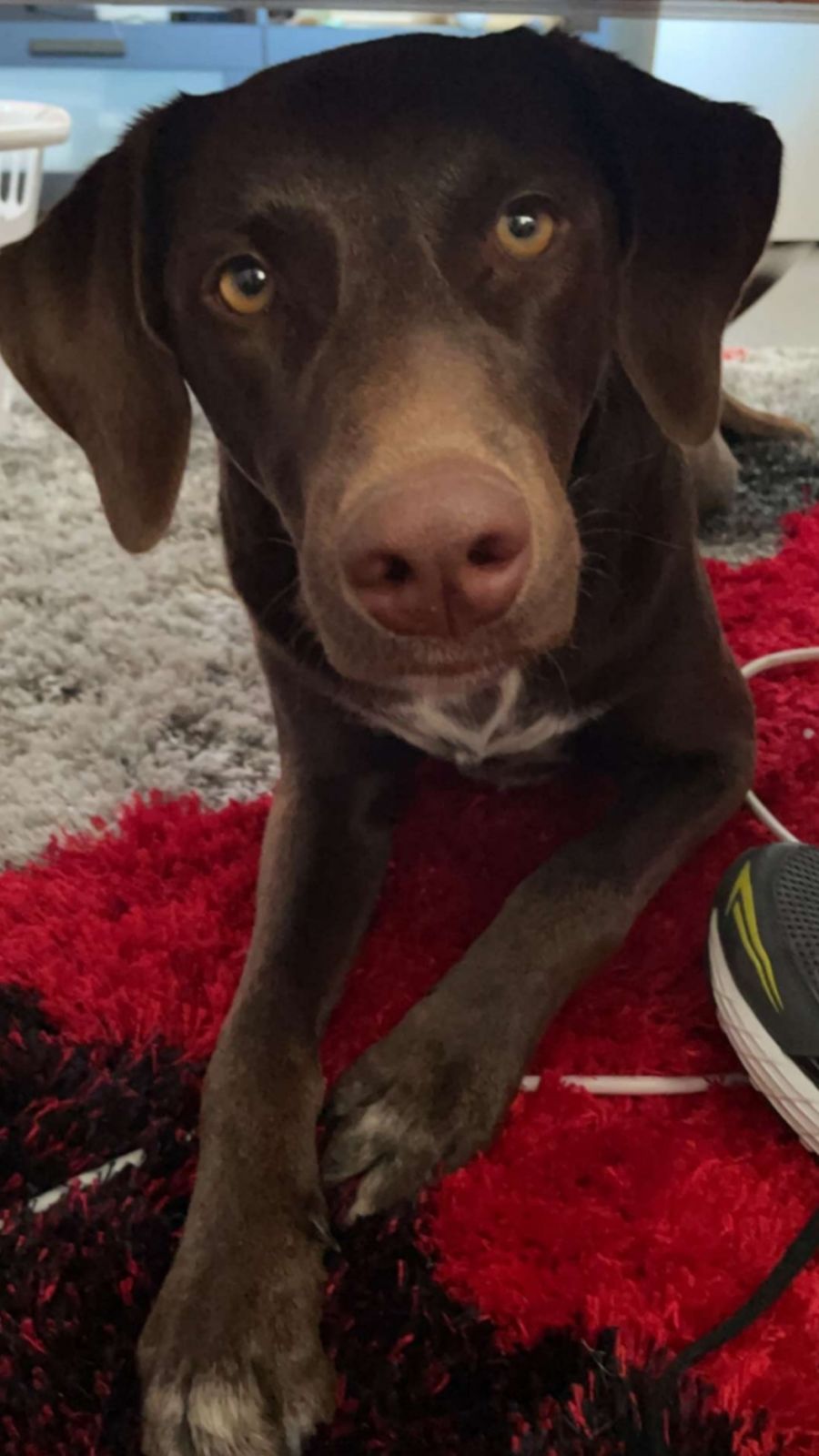 After coming back from his adventures, this handsome boy will lay next to you and overload you with lots of slobbery kisses. His friendly temperament is great with humans of all sizes. He likes playing with the fun little ones. Once it is time for a snooze, you can find him sleeping both in- and outside.