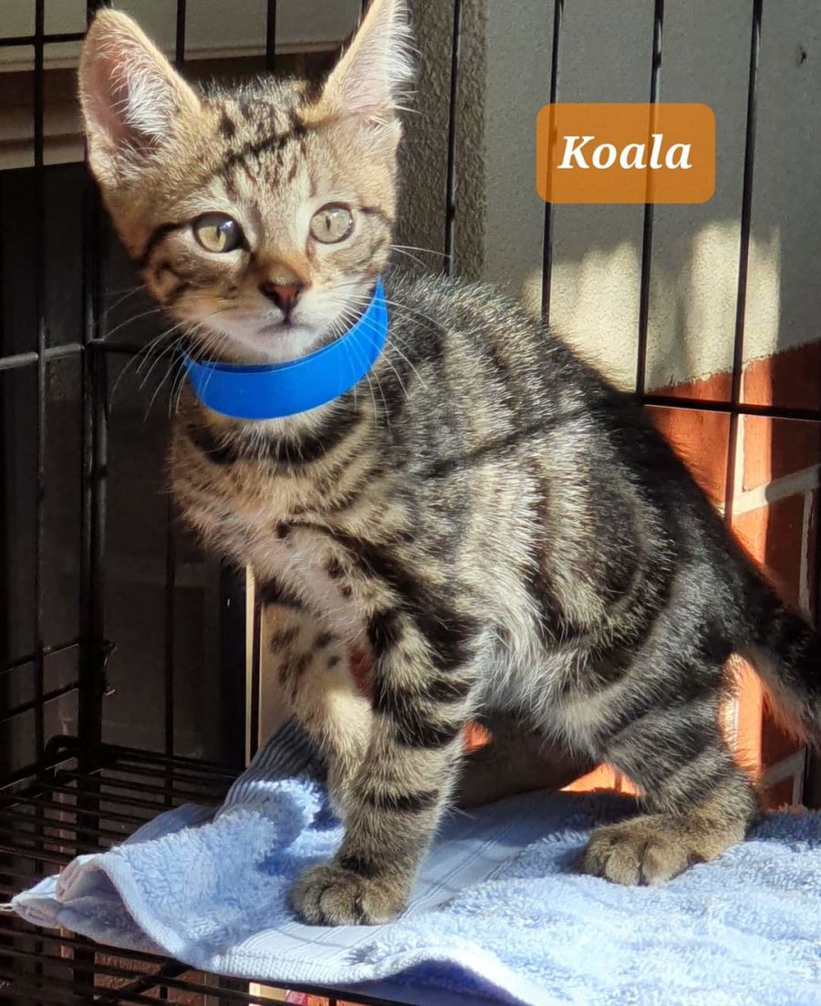 Koala's adoption fee is $250 and he goes to his new home flea and worm treated, had his first vaccination and microchipped.