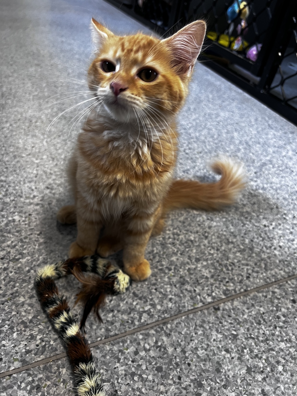 I am a beautiful female ginger Tabby. I am still a kitten so I am learning manners and have loads of energy.