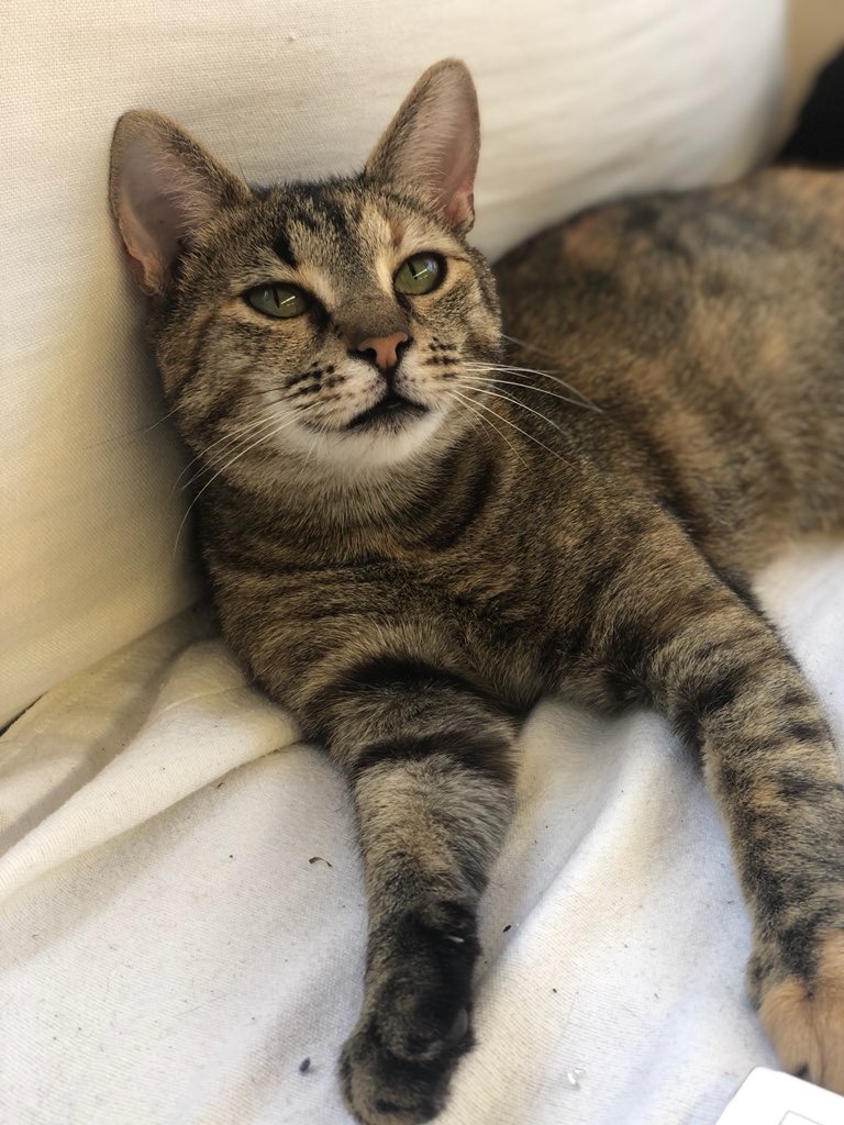 She is fine with other cats though will stick up for herself. She is super inquisitive and loves knocking things off surfaces and watching them drop 😂 it’s kind of cute if you aren’t attached to said thing. She will tap, tap, tap them to see how far they get before they go over.
