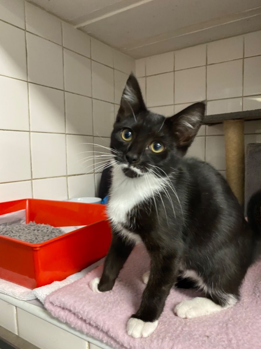 Aspen is a 16 week old Black & White Female Domestic Short Hair Kitten.