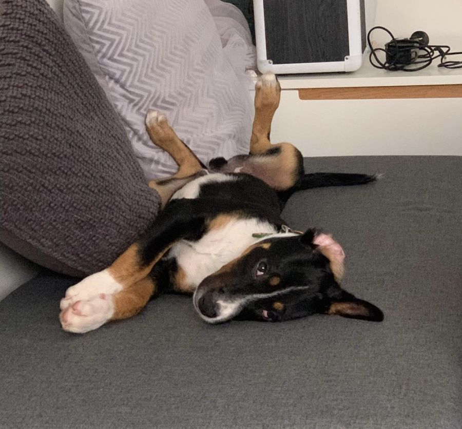 Lychee travels brilliantly in the car, and walks nicely on a lead, he doesn’t pull at all. Toilet training is starting to go well, he has been using a doggy door but does need reminding. Lychee currently sleeps in his own bed on my bedroom floor, and will happily put himself to bed when I go to bed. Lychee loves all people, he is an absolute pleasure to have around.