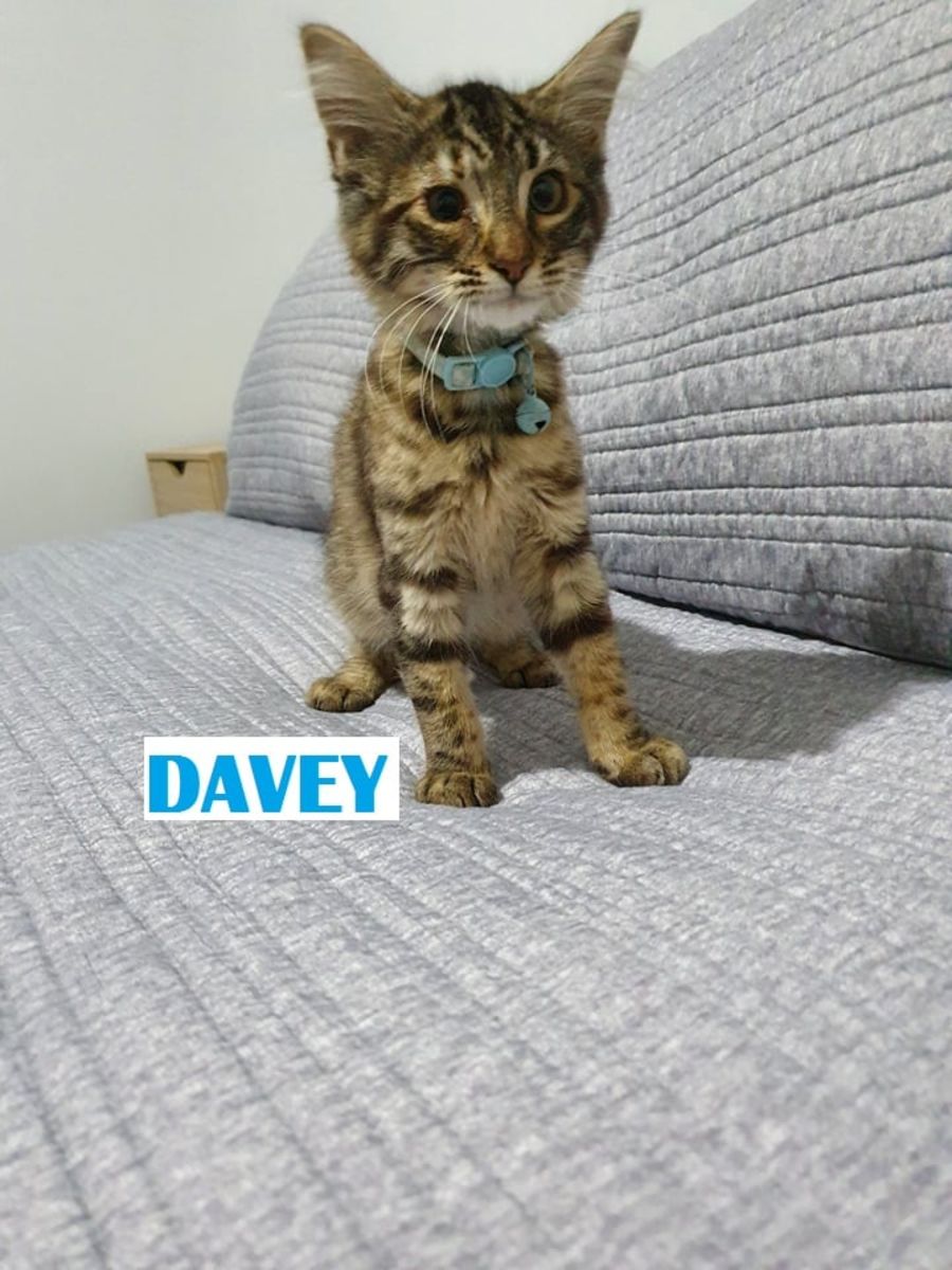 Hi I am Davey, you clicked my profile because you think I am cute and yes I sure am. I am very playful as well and love to explore. I am pretty easy going. I get along with kids and other cats but not so much dogs. I will run around and explore the home you have invited me to share with you. I also purr loud to if you pat me in the right places. I know you want to take me home so why not fill out the application and come meet me?