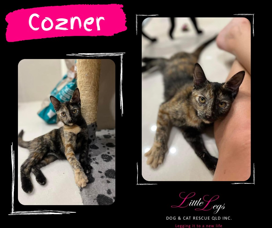My name is Cozner and as you can see I am puuuuuurdy. Its a girls prerogative that I just couldn't decide if I wanted to be ginger or black so I decided on both. I’m soft and silky and I’ll let you pat me once I’ve decided you’re worthy. Ive been saved from the pound in Rockhampton along with my siblings and mother, and I would just love to finally have family I can call my own. Do you have a kitten sized space in your home for me?
