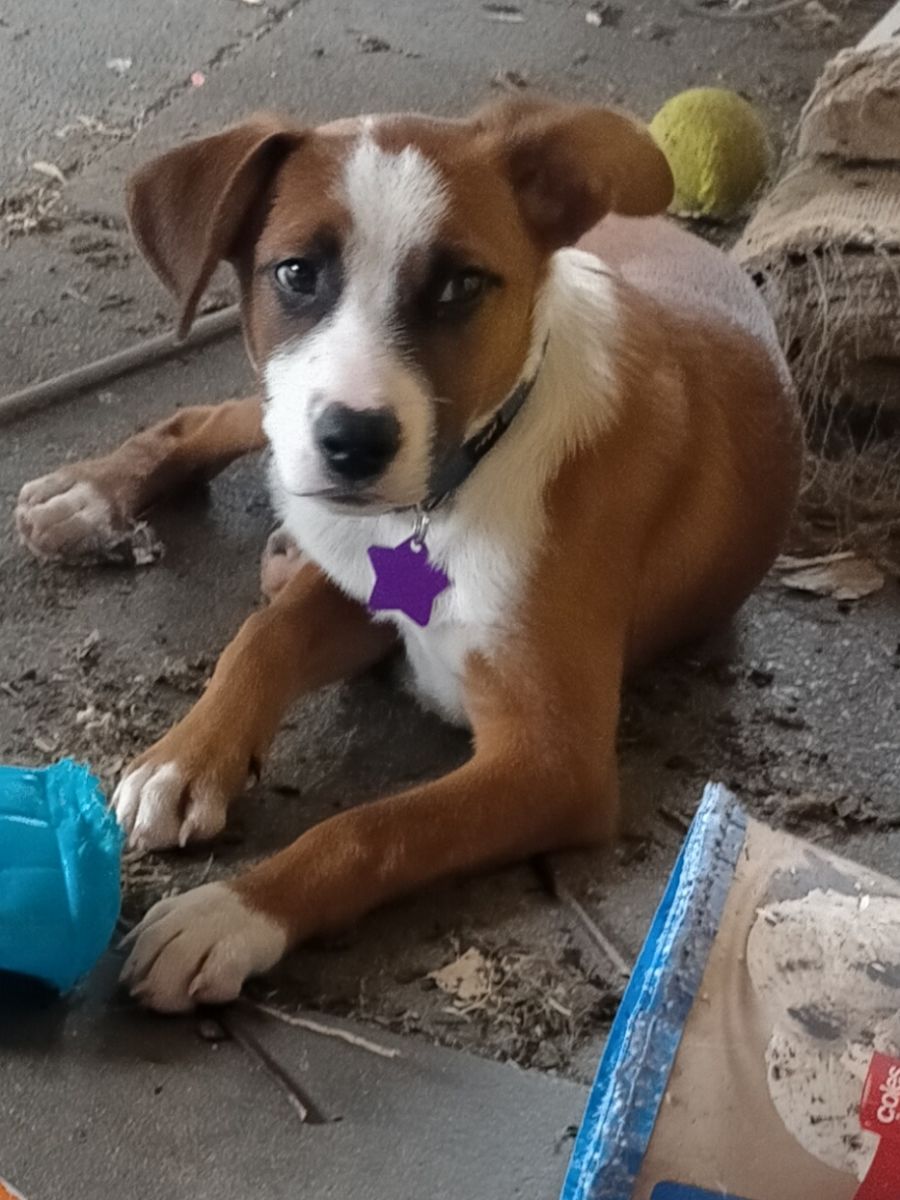 I love to play in the backyard with my toys and will need things to keep me busy when I am on my own. I sleep in a crate at night and am toilet trained. I love to be around people and am great with children. I like to get pats and cuddles from my humans and will follow you around the house to watch what you are doing. I really enjoy getting out for a walk and am very good on a lead.