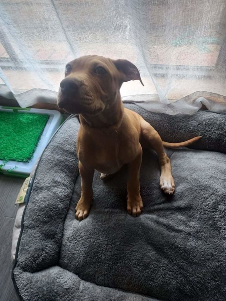 This beautiful little staffy was born in our care after her beautiful mumma needed a hand.