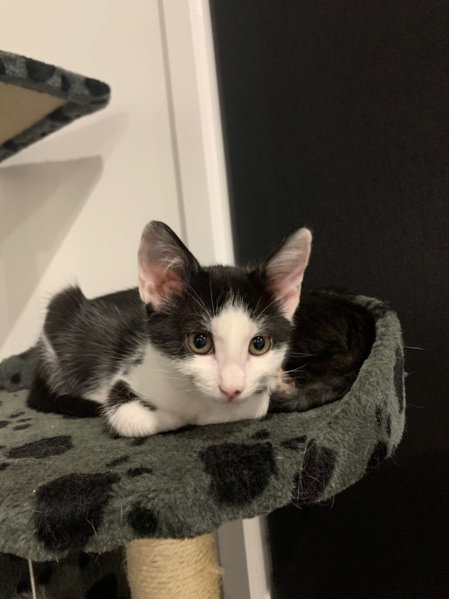 Hi, I’m Lucy. I’m very bright, adventurous and curious about everything. I love exploring the house, mucking around with human children, snuggling with my brother Oscar, sitting on my foster Mum’s chest while she watches TV, playing with toys, and happily keeping myself occupied all day long. I’ve mastered stair climbing and litter training, and very little scares me. Whilst I’m a bundle of energy during the day, I nap peacefully in the afternoon and sleep quietly all night with my brother in an enclosed playpen. I’m also always delighted to see my humans in the morning. I’ve been well socialised by the kids in my foster family, and I get along well with their older cat as well as my litter brother Oscar. I haven’t had a chance to meet a dog yet, but would probably do OK with one because I have the confidence to hold my own. I’m very protective of and close to my brother Oscar. We play together well and sleep cuddled up in a little box. Our foster family would love to see us adopted together if possible. If you’re looking for a well adjusted, happy and adventurous little kitten, I’d love to meet you.