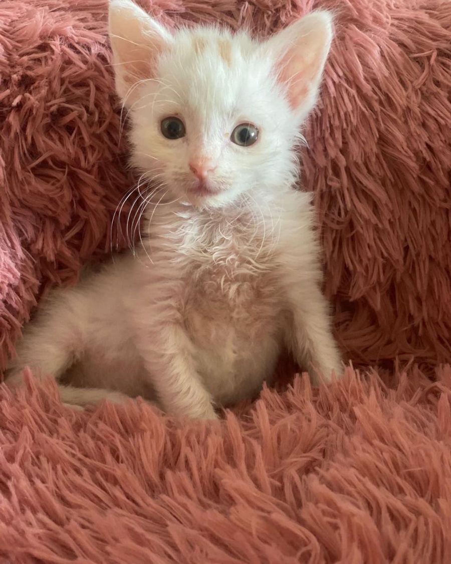 Due to her low immune system she will need to be an indoor only kitten!