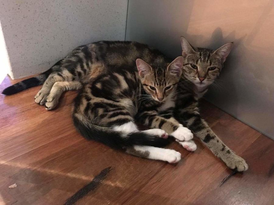 Liona and Mike are domestic shorthair brown tabbies