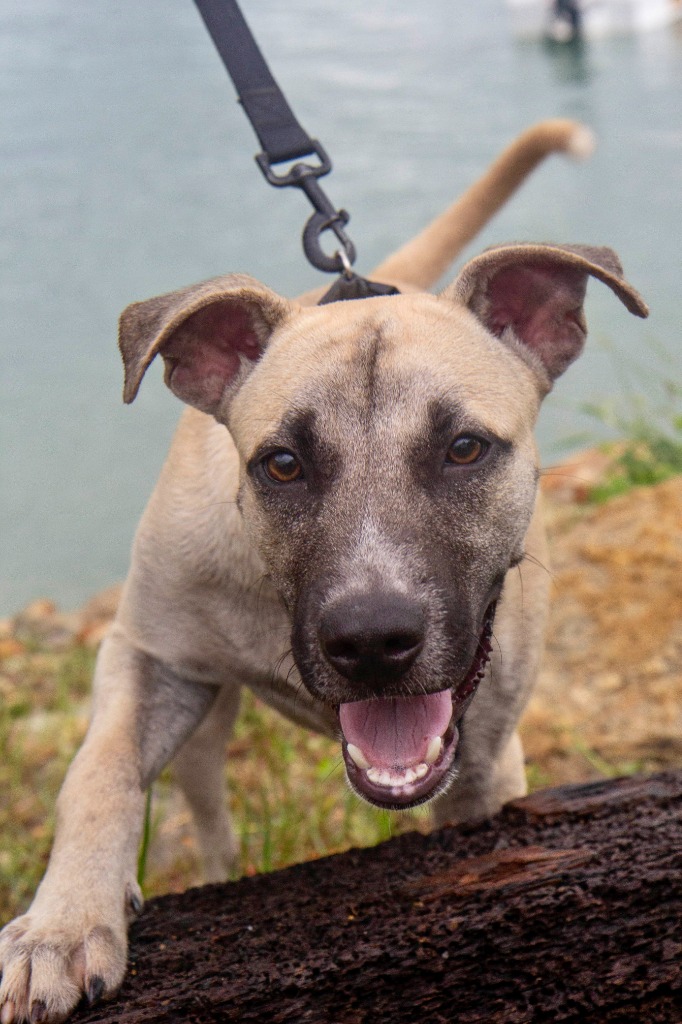 Duke is a super friendly and happy boy, he is soooo wanting to please his new family and loves going for walks, or a run on the beach, or creek, he loves swimming. We would be great for an active family who would like to get him into some training, he will do well with that as he loves treats and pats and really wants to please, he'd love to chill with you on your down time and would do well with another dog for company as long as he is introduced correctly (preferably a female, although he would be ok with a non-reactive male).