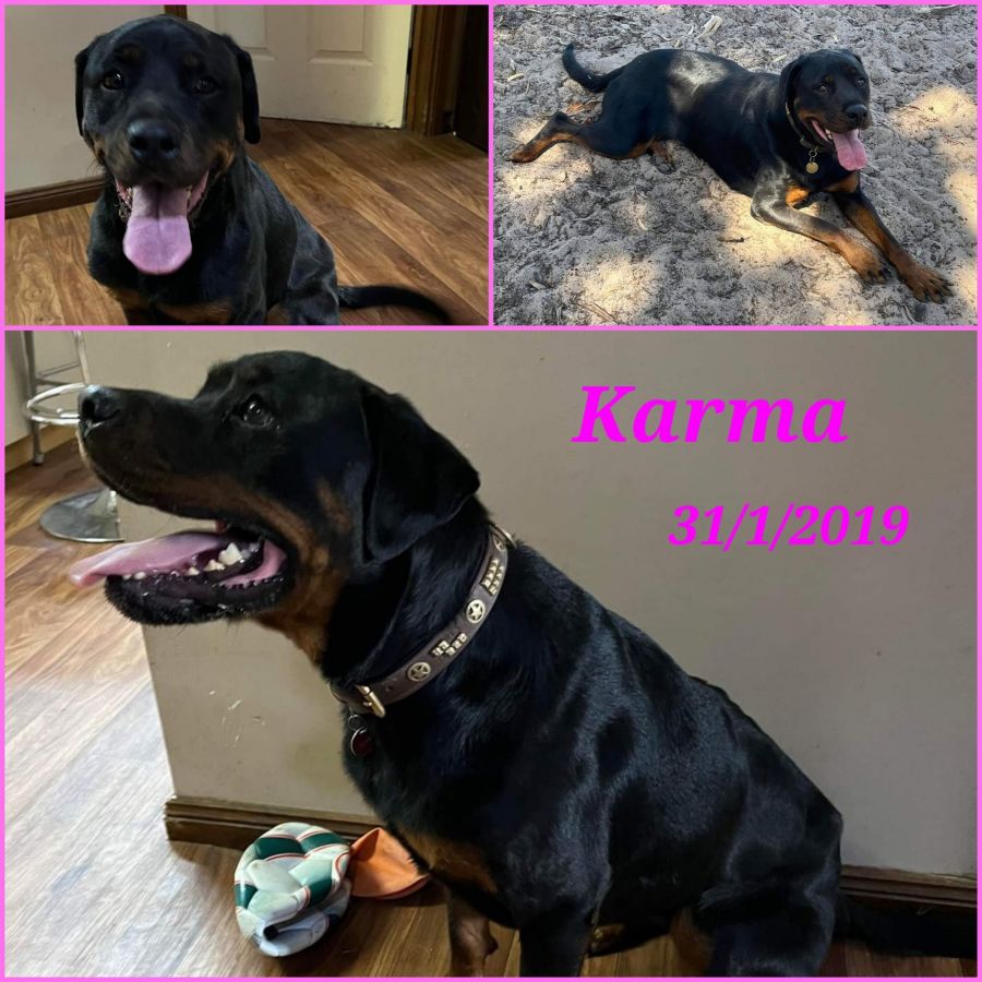 Karma is a Rottweiler that is most suited to being the only pet for several reasons. She is very comfortable with her own company whilst her family is away at work outside in a secure yard. But only if they then allow her to be with them once home. She still needs to be taught the pleasures of relaxing inside but adores just being with her people.