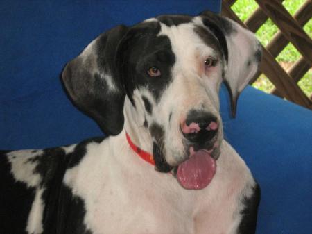 Charlie is a pedigree harlequin great dane who seeks a new home. Charlie has grown up with a male dane and since hitting her teenage years has decided that she'd rather be the only dog. Charlie and the other resident dane have had some problems so it's best that charlie be the only dog in her new home. Charlie does need to be desexed and her adoption fee will cover this - desexing may assis to some degree however rules and boundaries and firm leadership is what she needs. She's great with kids from toddler upwards. She's fine with the cat as well. She is loved and adored by her family and they want to see her in an environment where she will blossom, so experienced big dog owners need only apply