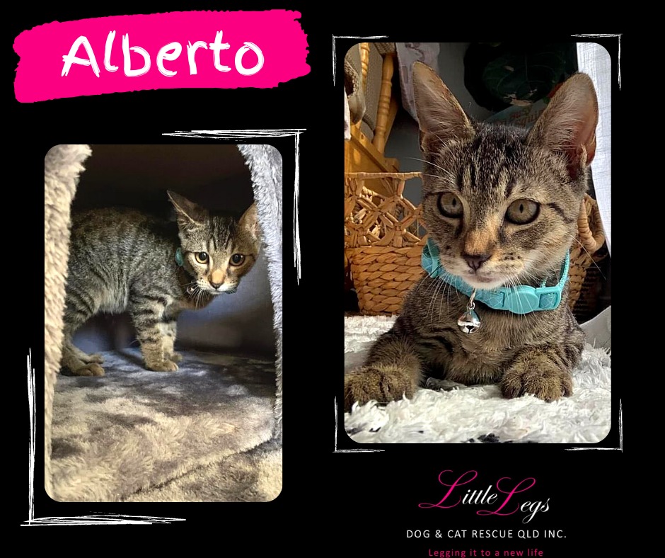 I’m Alberto and I’m a playful little love bug! I come from a litter of 5 but 3 of my siblings have left and I’m still looking for my Furever home. I am a curious and adventurous little boy and absolutely love snuggling up with my foster mummy, I purr the second I’m picked up and will sit with you for as long as you’ll let me. If you’re looking for a kitty who loves to play, will give you endless giggles with kitten antics and never ending snuggles then I’m your man. Do you think you could give me a chance? I will love you with every ounce of me, I promise ❤️