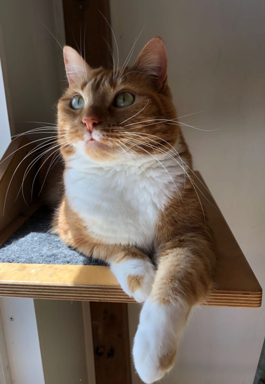 Tiger is quite the looker. The photos are never going to do justice to her real-life beauty. She has a petite physique with striking stripes adorning her body and enchanting green eyes that can overwhelm anyone with their lure. Tiger is a female ginger cat, quite a rarity, and she sports a similar rarity in her distinct personality.