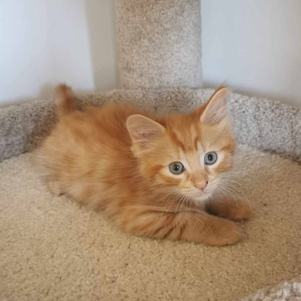 They call me Blaze, but I don't know why. I am pretty chilled fellow with a cheeky personality being the littlest among my litter mates. I am at my best when I am around my siblings & mummy. I am very attached to my brother Flame. We play, we groom, we snack, we snooze… we do all cat things together, so if you want me to join your family, you need to take my brother too! I may come across a little shy at first but it doesn't take too long to gain my trust… give me some tuna or salmon and we will be friends forever ;‐) If you want to welcome a tiny little ginger puss in your home then I will be waiting right here for you.