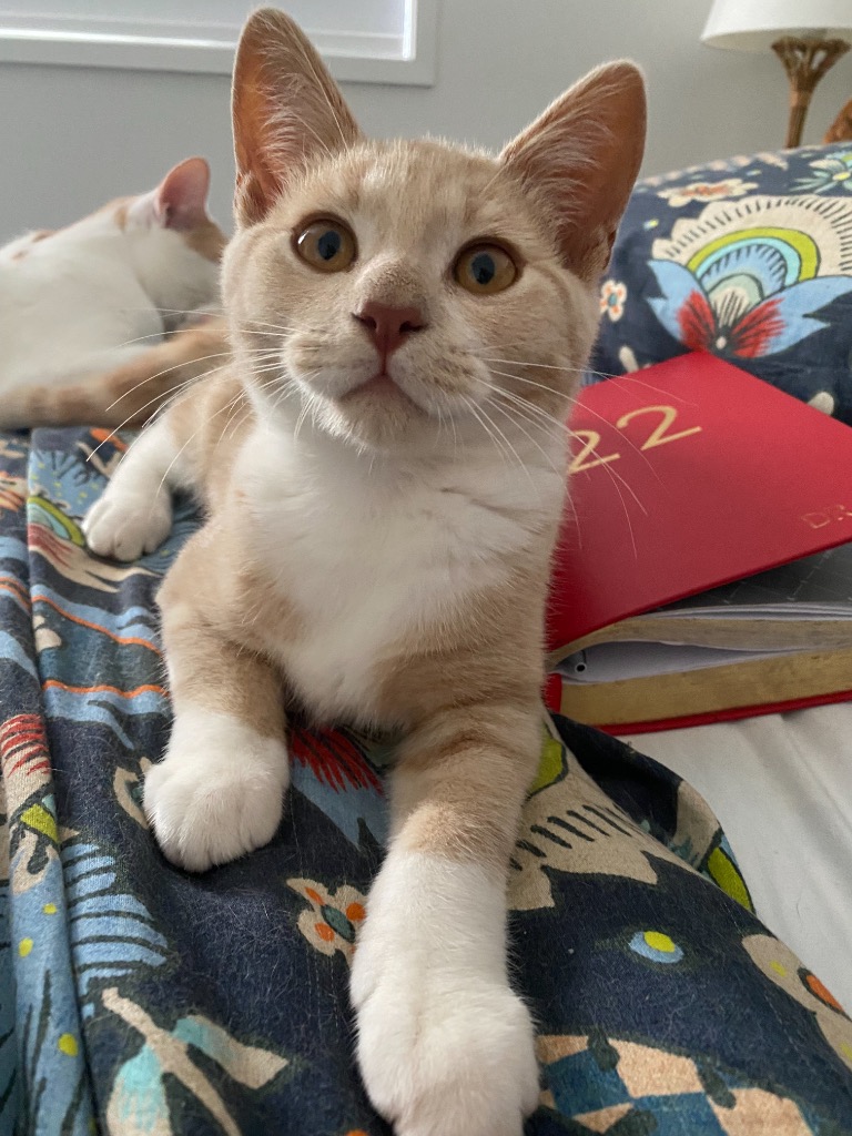 Duke the creamy ginger is a healthy kitten who's been wormed, flea treated, vaccinated and microchipped (microchip #956000014527874, source #RE101165). He is available for PRE adoption. A deposit can be made to hold the kitten until he is ready for adoption. Adoption is not available vet work/desexing has been completed and healed.