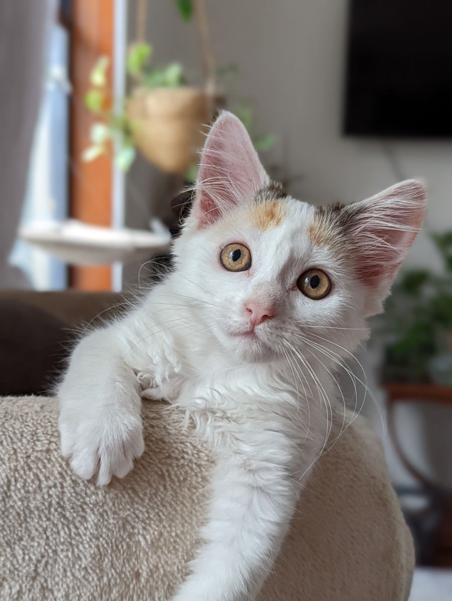 She would be an excellent kitten for someone looking for a companion and cuddle buddy who can give her lots of attention.