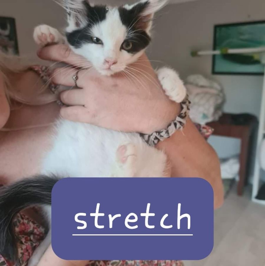 Hi I’m Stretch, although my foster Mum’s daughter has renamed me Cookie. I’m currently sharing my space with my brother Casper who I love lots. We love to play rough and tumble, but also snuggle down together. I like to spend time alone with my people, and don’t mind if my brother is around or not. It’s the people I love most. I’m on the lookout for a family that will love me forever and ever!
