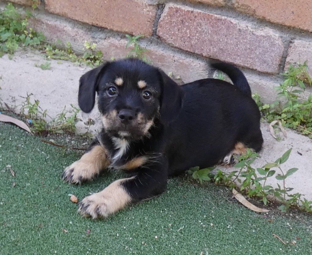 I am a gorgeous little girl. I'm happy, healthy, and ready to leap on you with a tonne of love and tail wags. My mother looks like a Shar-Pei, we don't know what my father was. I look like a jack russell cross and I have small feet, so what size I will be when I'm grown is a bit of a mystery - anywhere from small to medium. If you'd like me you probably should get in quick as I think I'll be popular. I will be spayed when I am 3 months old.-
