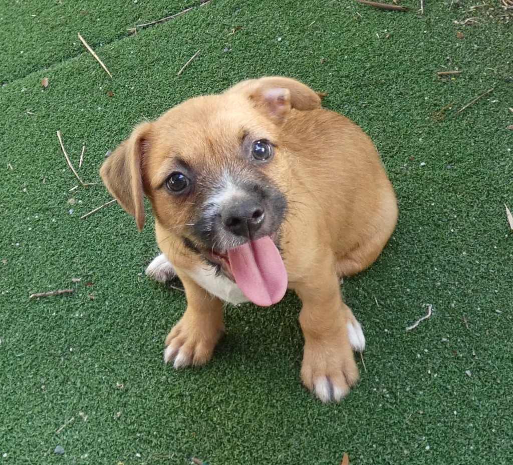 As you can see, I'm a gorgeous young puppy. I'm happy and bursting with energy and love. My mother looks like a shar-pei, but my sisters and I definitely don't look like we'll be large dogs. Dad was probably small, and we'll probably be small to medium. The bad news is that I currently have a major overbite. My vet says there's a fair chance that I will need dental surgery in the future to remove my adult bottom canines. My vet estimated this might cost $1200, but your vet may charge more. Before adopting this puppy please consult with your vet about the implications of an overbite and what expenses might be incurred. Don't adopt without being able and willing to help with any dental issues in the future.-