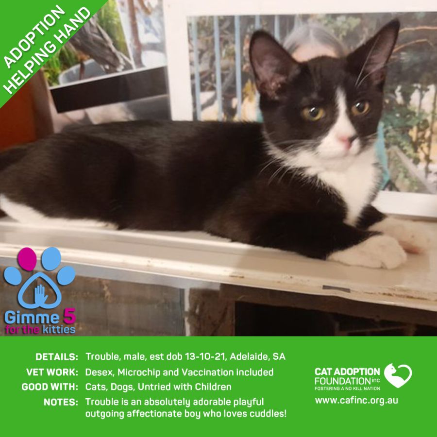 Donate to Trouble Helping Hand Adoption! at Cat Adoption Foundation Incorporated via Shout
