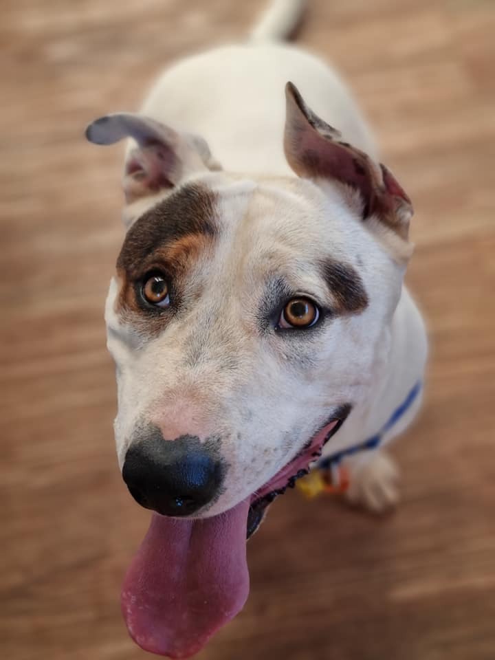 Spud is a happy boy who is always pleased to see you. He becomes easily excitable and is quite 'mouthy' toward his handler. Once calmed, he settles quickly. Spud is deaf. He will require some training and guidance not to use his mouth to 'speak' to you.