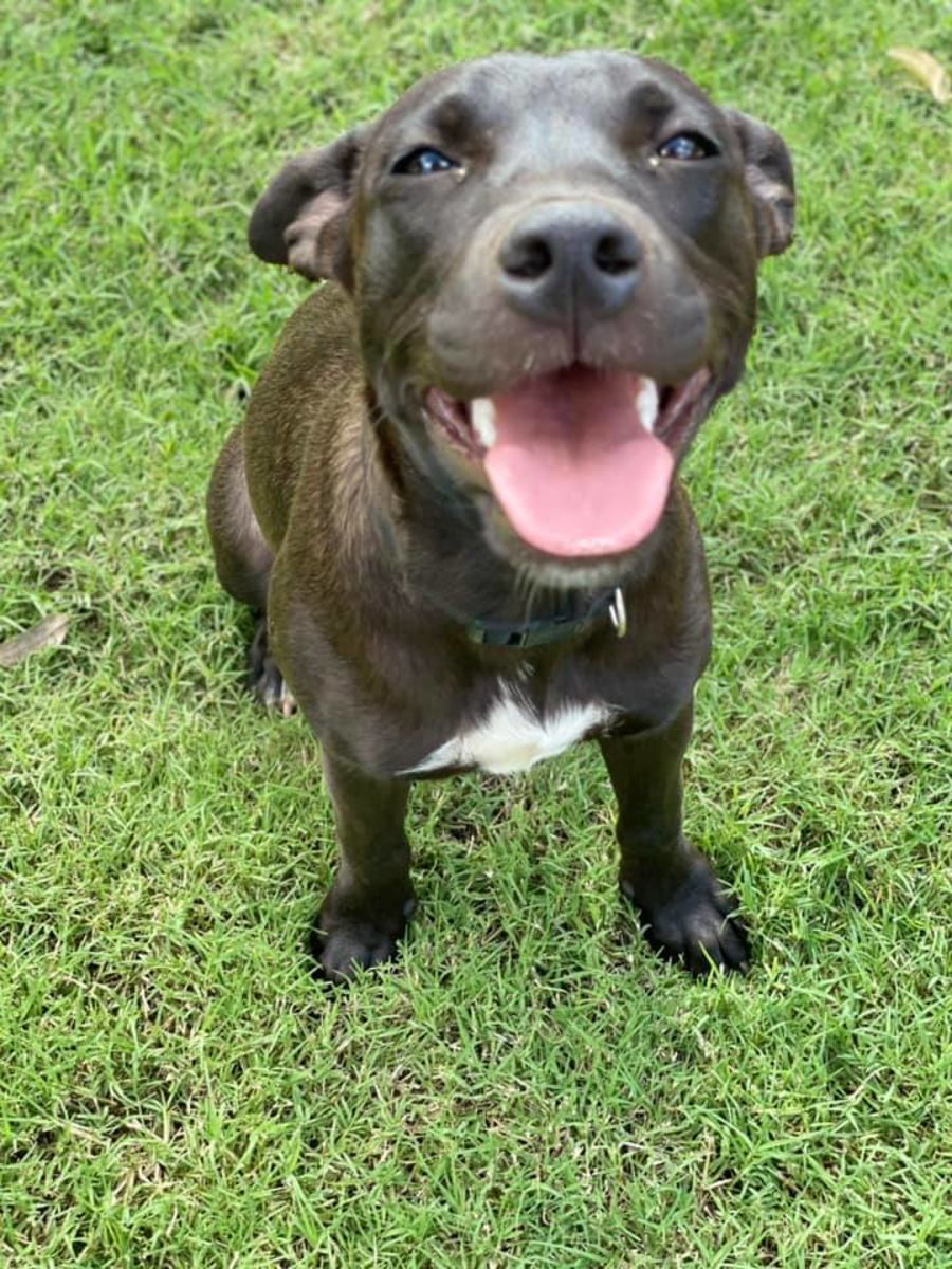 Prada is currently fostered with multiple other dogs and young children.