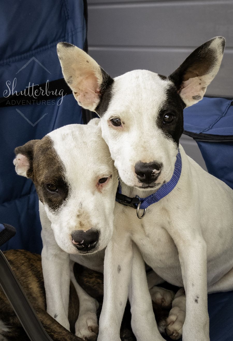 They are responding to their names, know how to come and are learning to sit. They have typical puppy energy, characteristics and playfulness. They really love their toys a lot so the more the better.