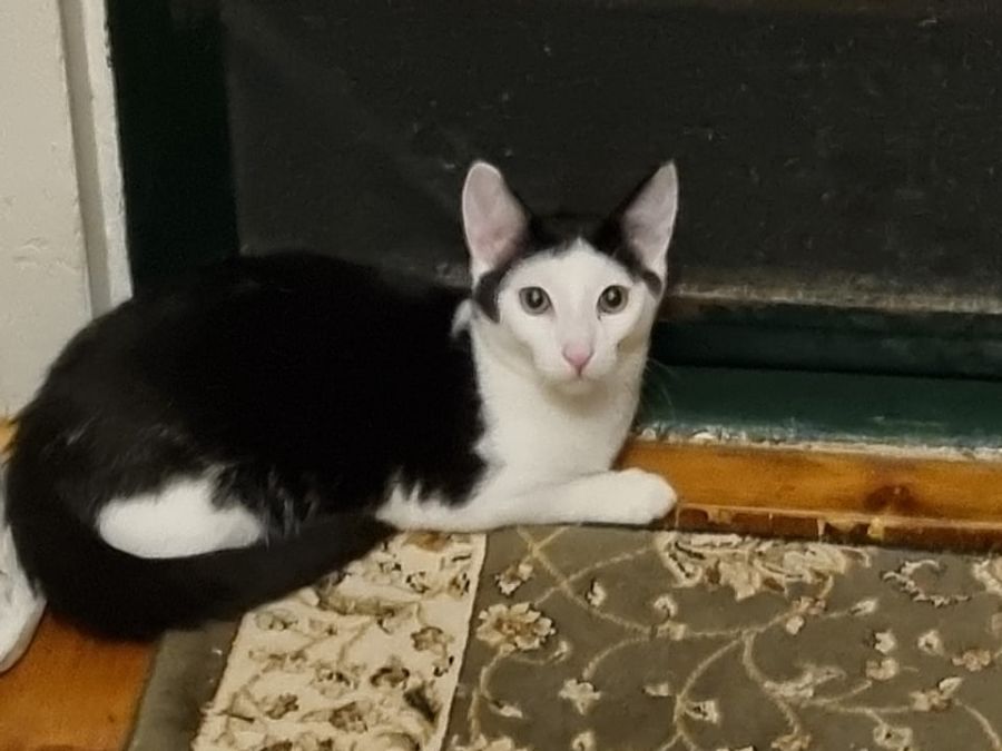 Winston is friendly, loving and fun! He is the leader of the pack amongst his foster siblings, He is always getting into mischief! Winston is looking for a home where he has lots of fun toys and humans play with and cuddle up to at night in bed. He gets along great with other kitties and would be fine going to a home with another young, playful cat friend. He has no experience around dogs or young kids so a slow, careful introduction is a must.