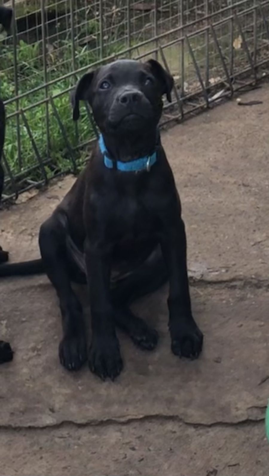 Danessa has a blue collar. There were 10 pups born one died at birth one was kept by the owner and all 8 girls were surrendered to happy paws as mum would not have anything to do with them anymore. Their mother was an English Staffy and Dad a Roti with a bit of lab thrown in for good measure. They are all lovely friendly smart playful pups due to their colour very hard to tell them apart.