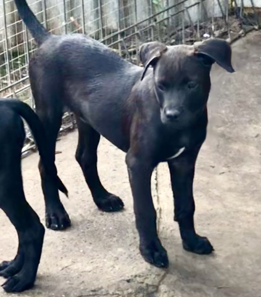 Danielle has a red and white collar. There were 10 pups born one died at birth one was kept by the owner and all 8 girls were surrendered to happy paws as mum would not have anything to do with them anymore. Their mother was an English Staffy and Dad a Roti with a bit of lab thrown in for good measure. They are all lovely friendly smart playful pups due to their colour very hard to tell them apart.
