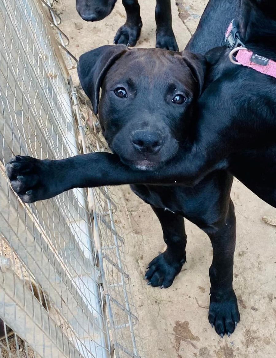 Daria has a red collar. There were 10 pups born one died at birth one was kept by the owner and all 8 girls were surrendered to happy paws as mum would not have anything to do with them anymore. Their mother was an English Staffy and Dad a Roti with a bit of lab thrown in for good measure. They are all lovely friendly smart playful pups due to their colour very hard to tell them apart.