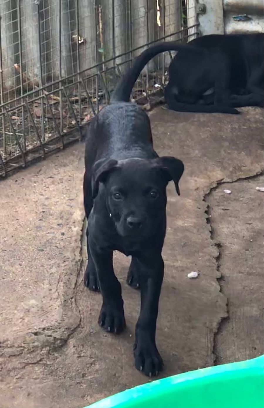 Dasha has a purple collar. There were 10 pups born one died at birth one was kept by the owner and all 8 girls were surrendered to happy paws as mum would not have anything to do with them anymore. Their mother was an English Staffy and Dad a Roti with a bit of lab thrown in for good measure. They are all lovely friendly smart playful pups due to their colour very hard to tell them apart.