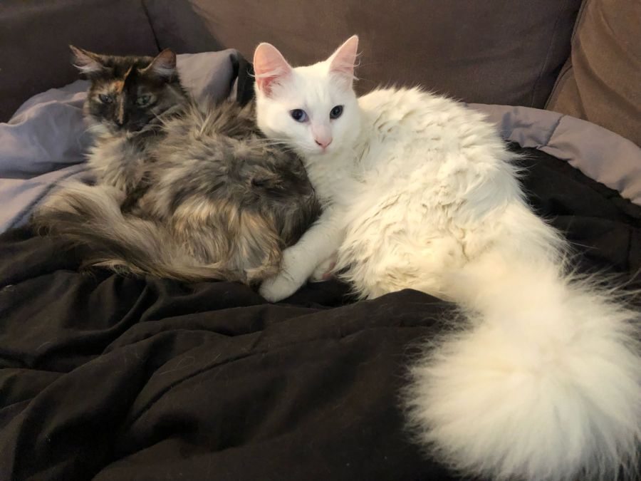 Beautiful fluffy white cat whose current owner has gone overseas after surrendering the cats. The are wonderful and friendly to each other and us humans a real treat for anyone to be lucky enough to have in their lives.