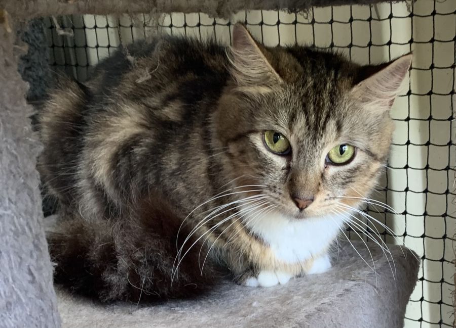 Kerrie is a 2yr old fluffy little girl with bright green eyes. She came into care with her sister, both pregnant and has been a wonderful mum. Now that her kittens have been adopted, it’s her turn to find a forever home. This beautiful girl spends her days curled up on her scratching towers waiting for affection. She loves her head rubs, is loving and gentle, and has fitted in well to foster life amongst the other kitties in care. She comes desexed, microchipped (#991003000430010), vaccinated, wormed and with flea prevention. Located at Gorokan for Claws n Paws Rescue 💚